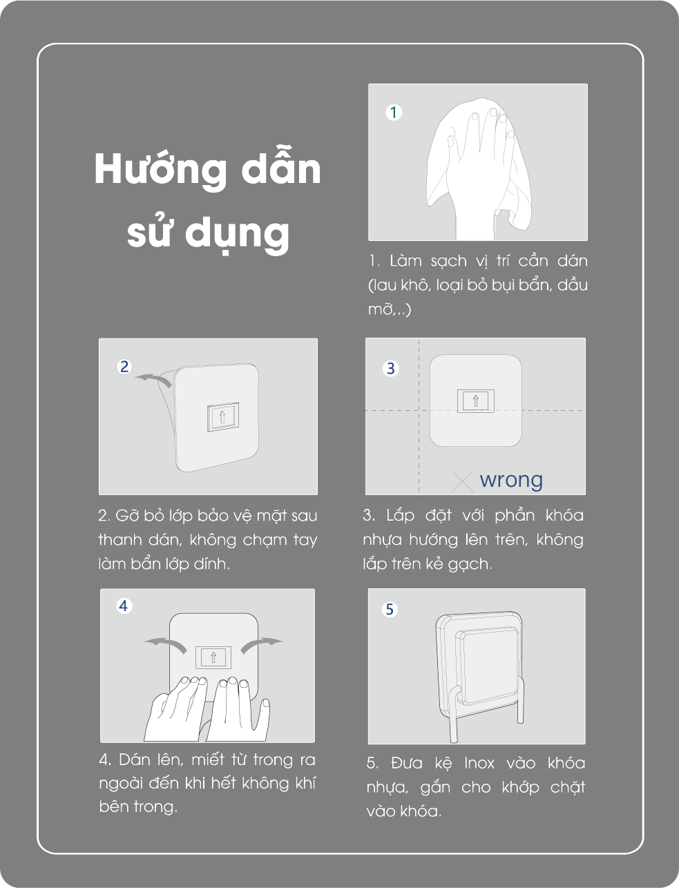 4. Không sử dụng bất kỳ chất tẩy rửa, vải, bàn chải hoặc cọ quét để làm sạch lớp dính.